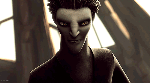 CANON PERSONALITY: A former powerhouse of the dark ages and older than humanity, Pitch (while never really all that kind or "good") was in his own way a guard of humanity since they were crawling in to caves and building fires for the first time. Times, however, have changed. After all in this modern day and age there's no room for monsters under the bed and shadows chasing you through the woods when there are strangers ready to whisk kids off in vans full of booby trapped candy. Pitch is old, angry, and has had a lot of time to plan his attack on the status quo.